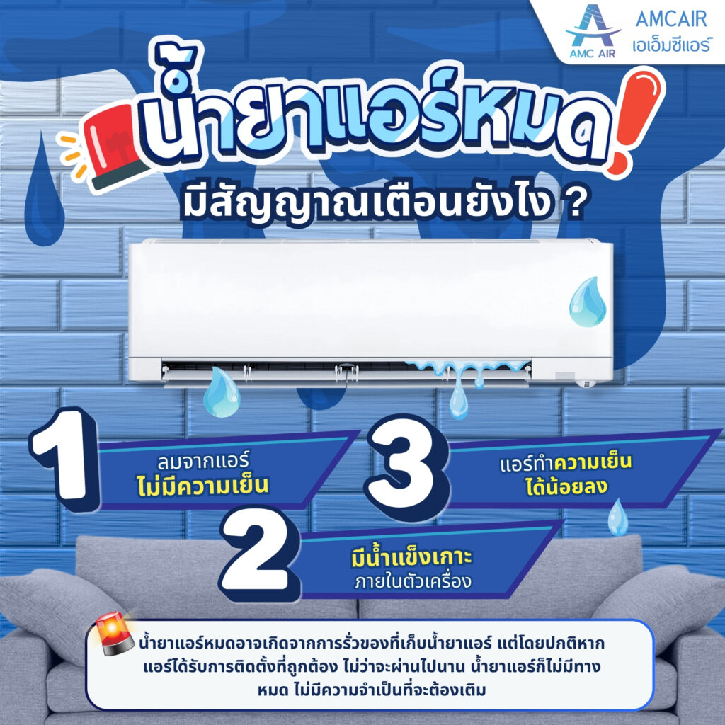 เมื่อน้ำยาแอร์บ้านหมด จะไม่มีสัญลักษณ์แจ้งเตือนที่ตัวเครื่องหรือแผงควบคุม แต่จะสังเกตได้จากอาการหลักๆ เช่น ลมแอร์ไม่เย็นหรือเย็นน้อยลงมาก มีลมธรรมดาออกมาแต่ไม่มีความเย็น มีน้ำแข็งเกาะที่ท่อน้ำยาแอร์ หรือ มีค่าไฟสูงขึ้นกว่าปกติ หากพบอาการเหล่านี้ควรเรียกช่างผู้เชี่ยวชาญมาตรวจสอบและเติมน้ำยาแอร์ให้ถูกต้อง.