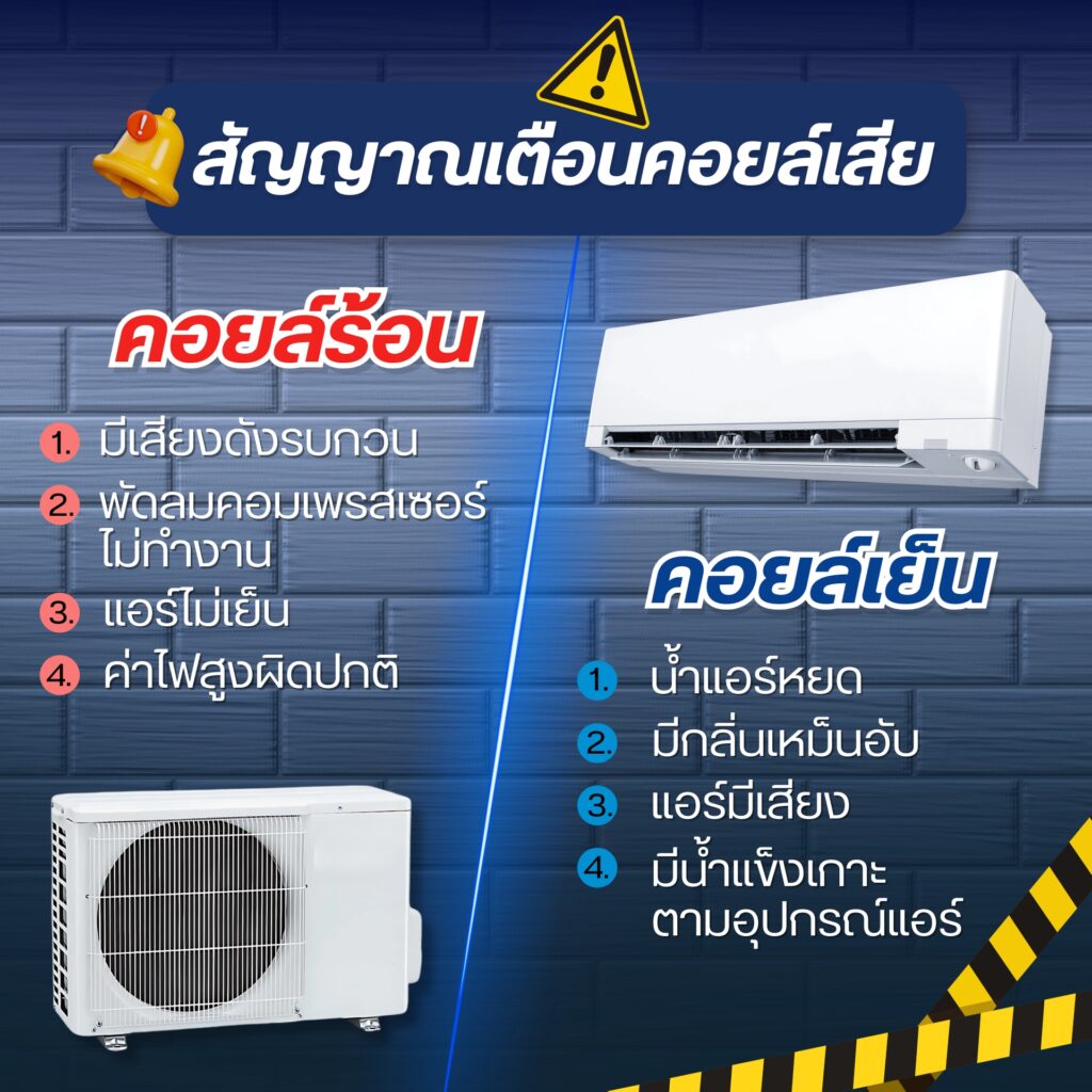 ● ค่าไฟสูงผิดปกติ : สาเหตุของค่าไฟในแต่ละเดือนเพิ่มมากขึ้นเกิดได้จากทั้งสิ่งแวดล้อมภายในและภายนอก อาจเกิดจากระบบไฟขัดข้อง ไฟรั่ว ทำให้คอมเพรสเซอร์มีความร้อนสูงตลอดเวลาส่งผลให้ให้แอร์ทำงานหนักและใช้พลังงานมากเกินไป