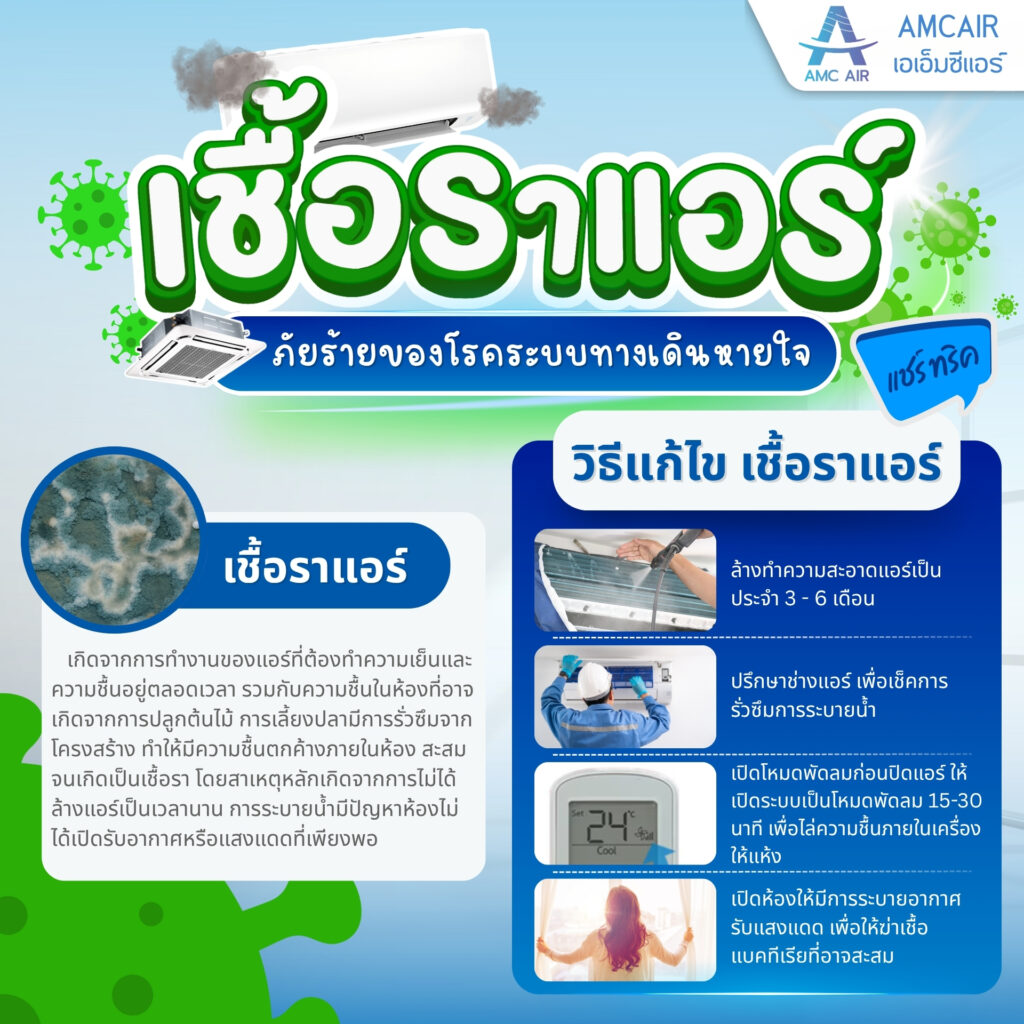 📍 เชื้อราแอร์ เกิดจากการทำงานของแอร์ที่ต้องทำความเย็นและความชื้นอยู่ตลอดเวลา รวมกับความชื้นในห้องที่อาจเกิดจากการปลูกต้นไม้ การเลี้ยงปลา มีการรั่วซึมจากโครงสร้าง ทำให้มีความชื้นตกค้างภายในห้อง สะสมจนเกิดเป็นเชื้อรา โดยสาเหตุหลักเกิดจากการไม่ได้ล้างแอร์เป็นเวลานาน การระบายน้ำมีปัญหา ห้องไม่ได้เปิดรับอากาศหรือแสงแดดเพียงพอ