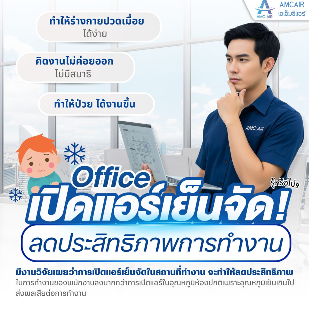 การเปิดแอร์เย็นจัดอาจส่งผลเสียต่อประสิทธิภาพการทำงานได้จริง โดยเฉพาะอย่างยิ่งในสภาพแวดล้อมการทำงาน. การตั้งอุณหภูมิแอร์ที่ต่ำเกินไปอาจทำให้ร่างกายรู้สึกหนาวเย็นจนเกินไป ส่งผลต่อสมาธิและความสามารถในการทำงาน . นอกจากนี้ การเปิดแอร์เย็นจัดยังอาจทำให้เกิดภาวะหลอดเลือดสมองอักเสบและตาแห้งได้.