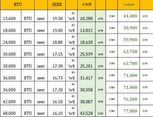 | BTU | 13600, 18000, 24000, 30000, 36000, 42000, 48000 |